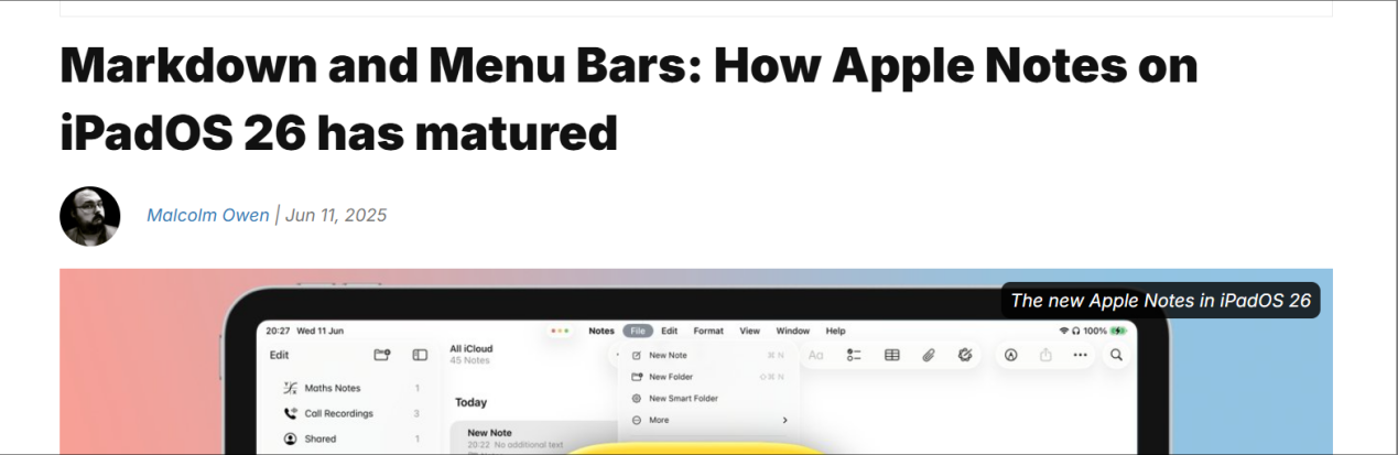 【环球网科技综合报道】6月12日消息,外媒日前整理了iPadOS 26上备忘录应用的改进,包括添加通话录音转录、导出 Markdown 文件以及引入新的菜单栏。